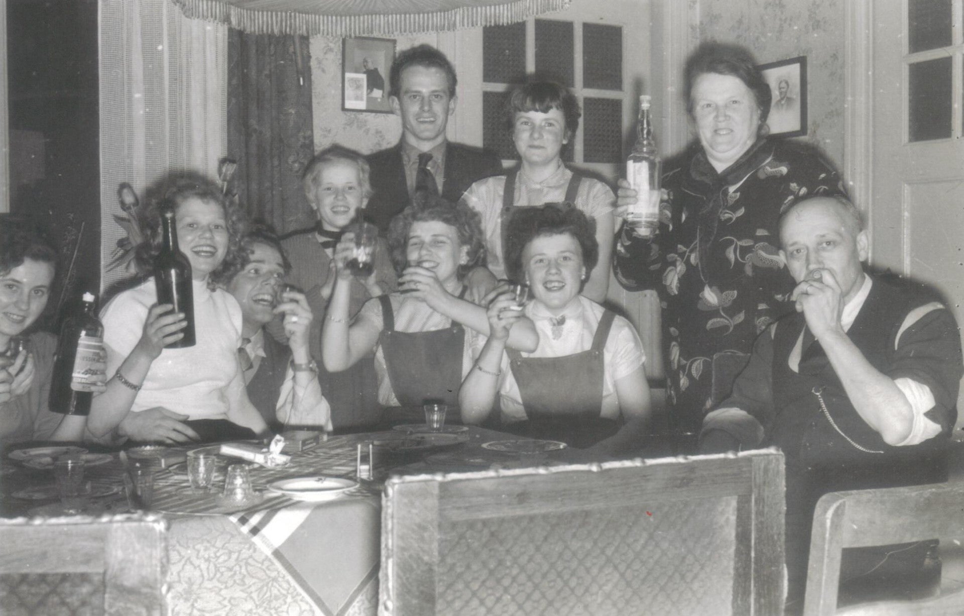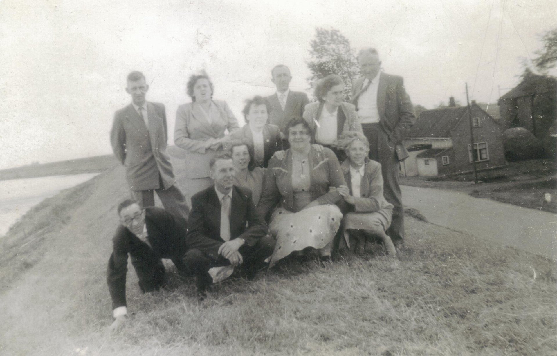 Met de kinderen: Ans, Egbert, Jan, Antje, Bernard en Mia. En Rikie Dulk, Jan Feyen en Tonnie.