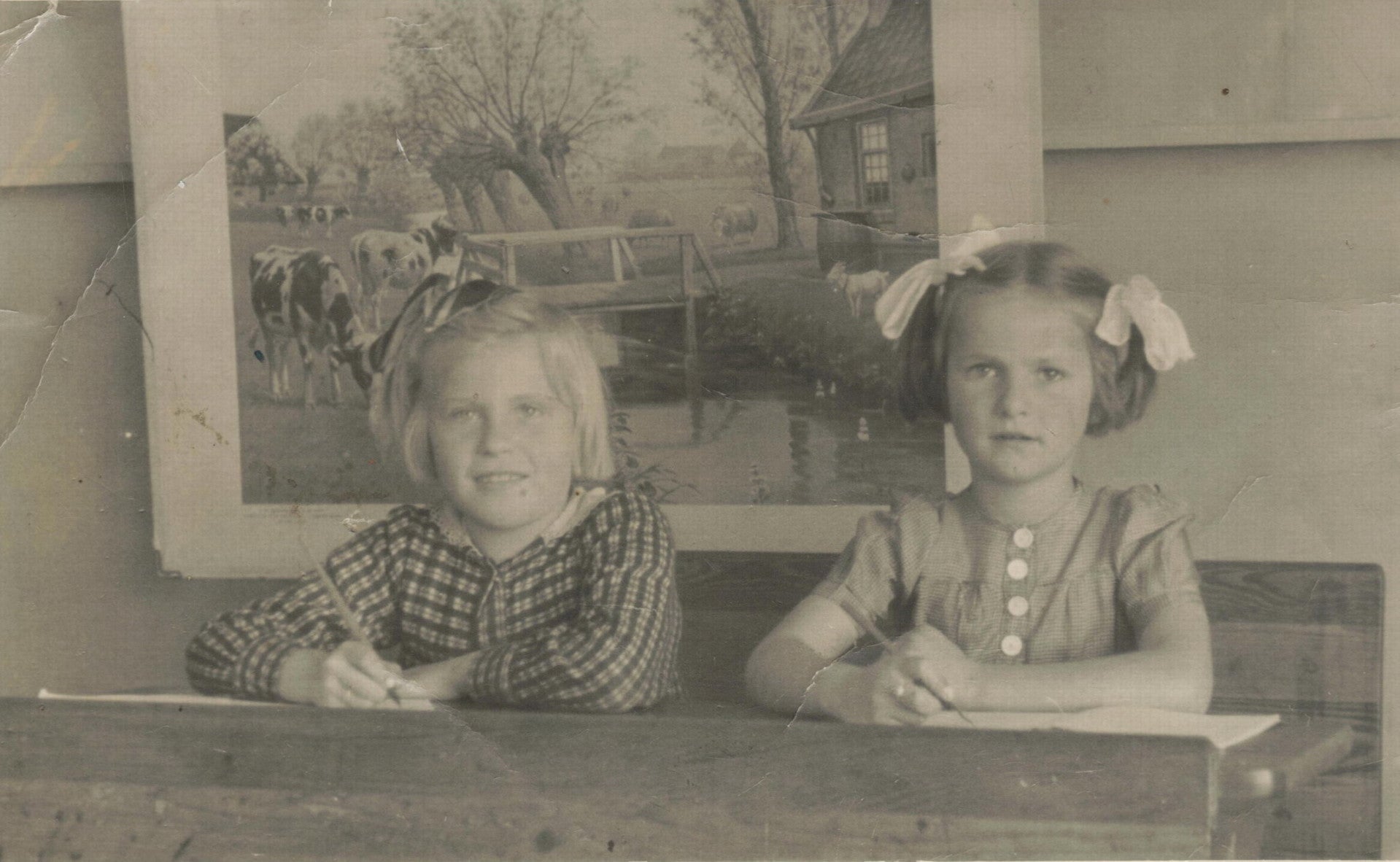 En natuurlijk naar school: links Corry Gaikema en rechts Tonnie.