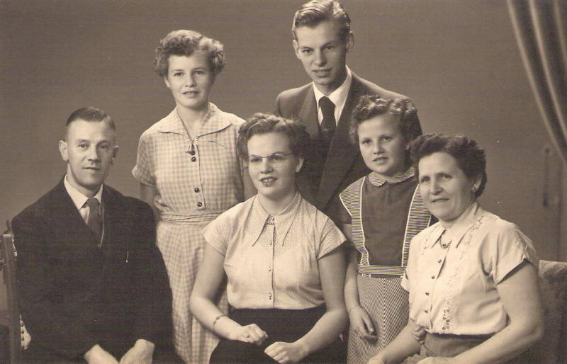 V.l.n.r vader Wiersma, Sjaantje, Annie, Sjef, Cisca en moeder Wiersma.